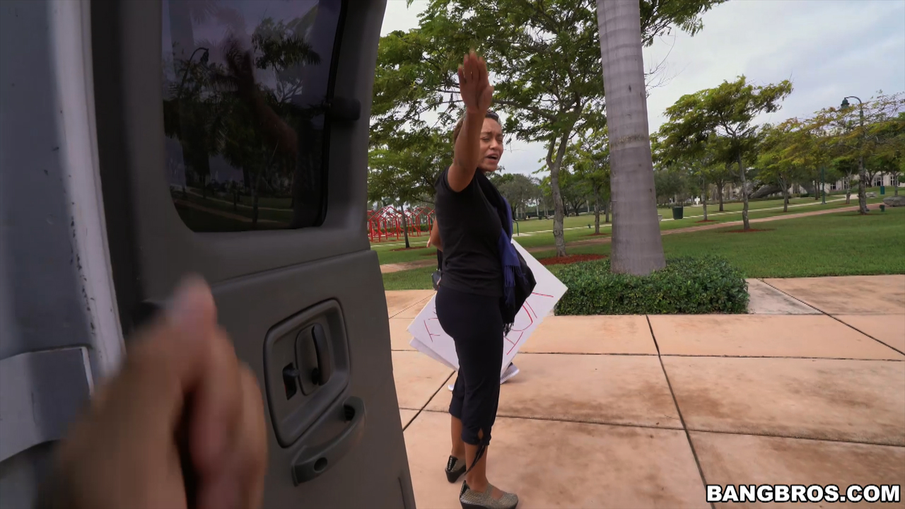 Amilian Kush’s big ebony booty gets picked up in public, fucked for cash in the car—black teen doggy style, car BJ, reality POV.