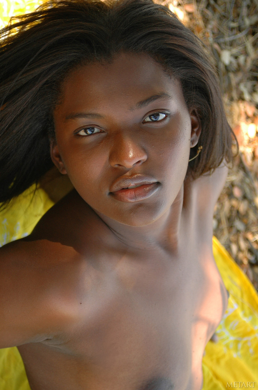 Glamorous ebony teen Geisha A flaunts her petite, shaved African pussy and tiny tits outdoors in nature, revealing perfect wet black teen curves.