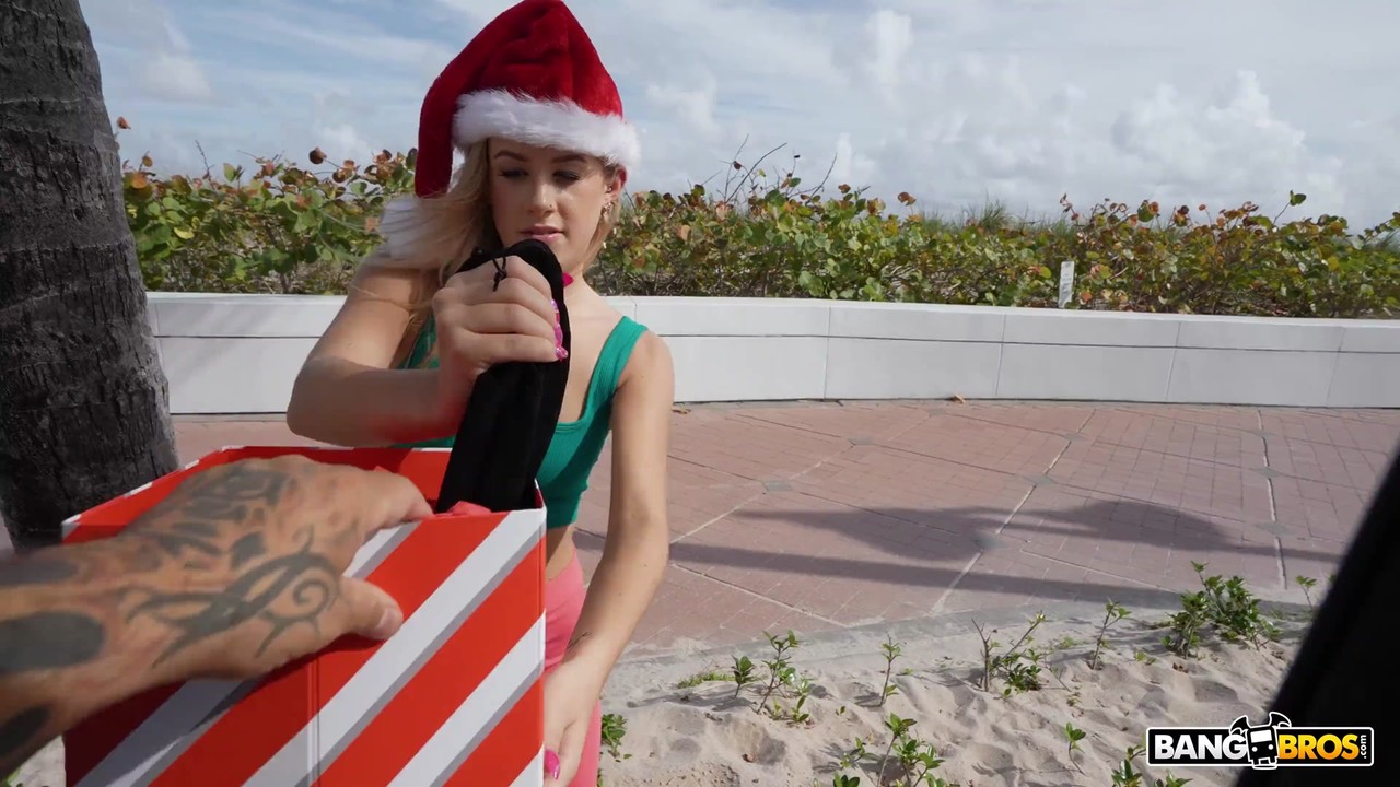 Christmas hardcore reality shoot: short-haired amateur Ashley Alexander sucks Tony Rubino outdoors, spreading tight pussy for festive Bangbros fuck pics.