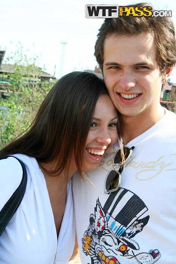 Amateur brunette Abbey and her hung Euro boyfriend film a steamy homemade beach sex tape, sucking and fucking naked by the river in real public outdoor action.