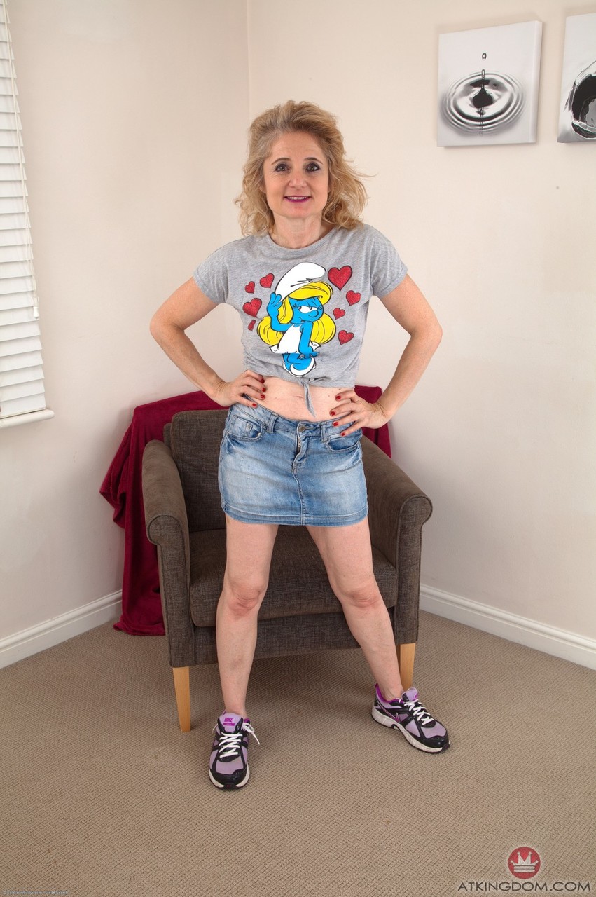 Mature blonde Isabella Diana strips lingerie to spread her extremely hairy granny pussy, showing saggy tits, panties, feet for over-70 amateur fans.