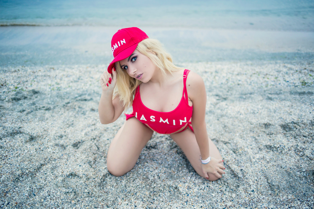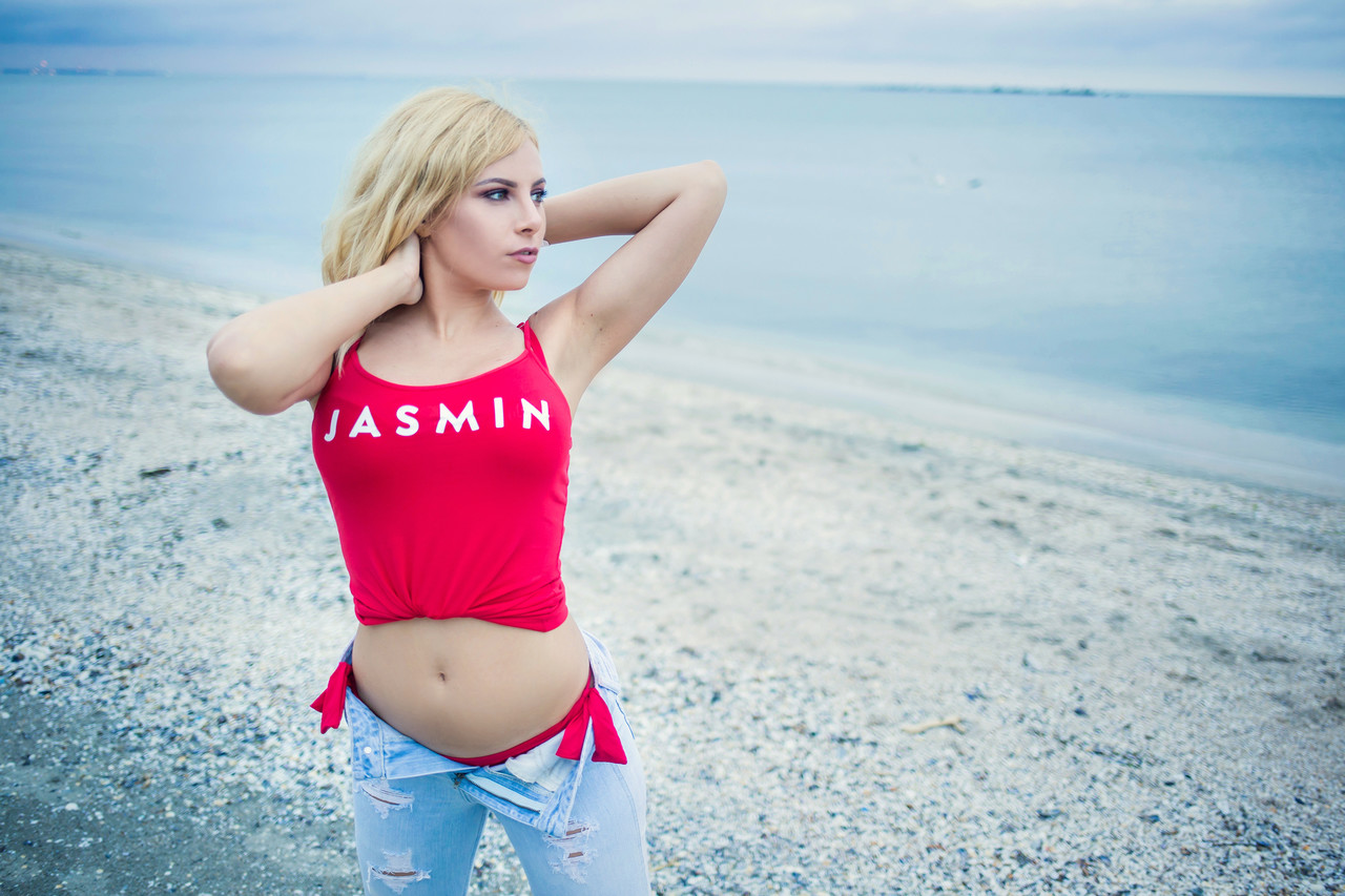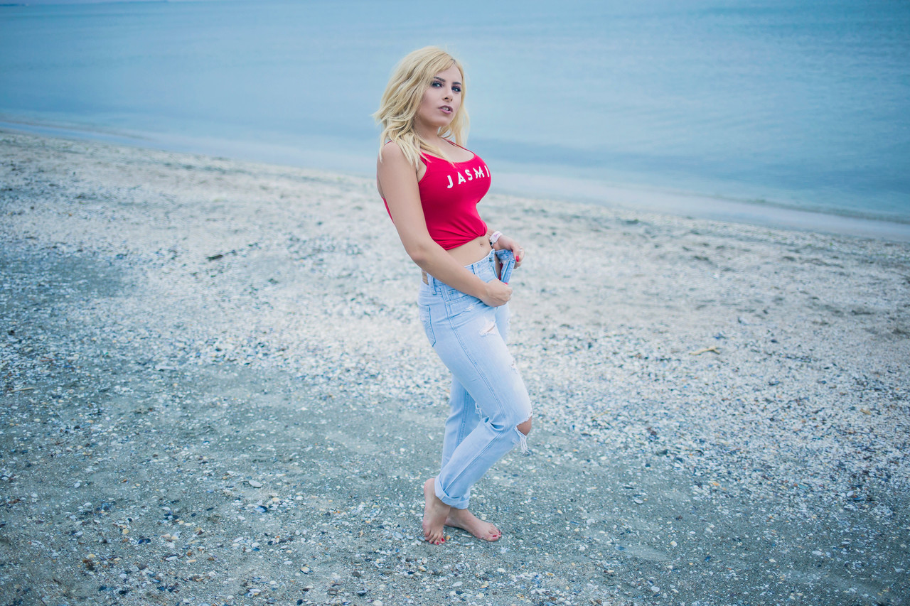 Blonde amateur Vanesa Parks flaunts her tight jeans ass on the beach, stripping from bikini to bare cheeks in steamy solo outdoor tease.