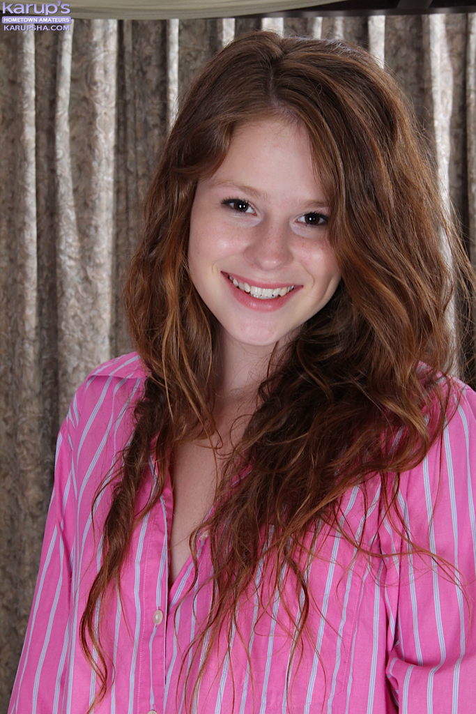 Natural Redhead Kartna Spreads Shaved Teen Pussy Lips