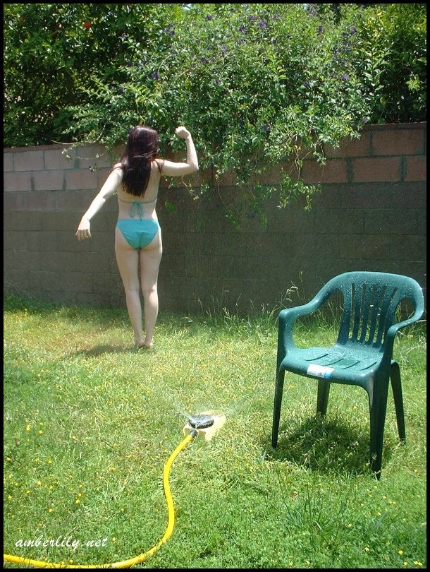 الفتاة الشاحبة أمبر ليلي تكشف عن مؤخرتها بينما تبلل نفسها بخرطوم الحديقة