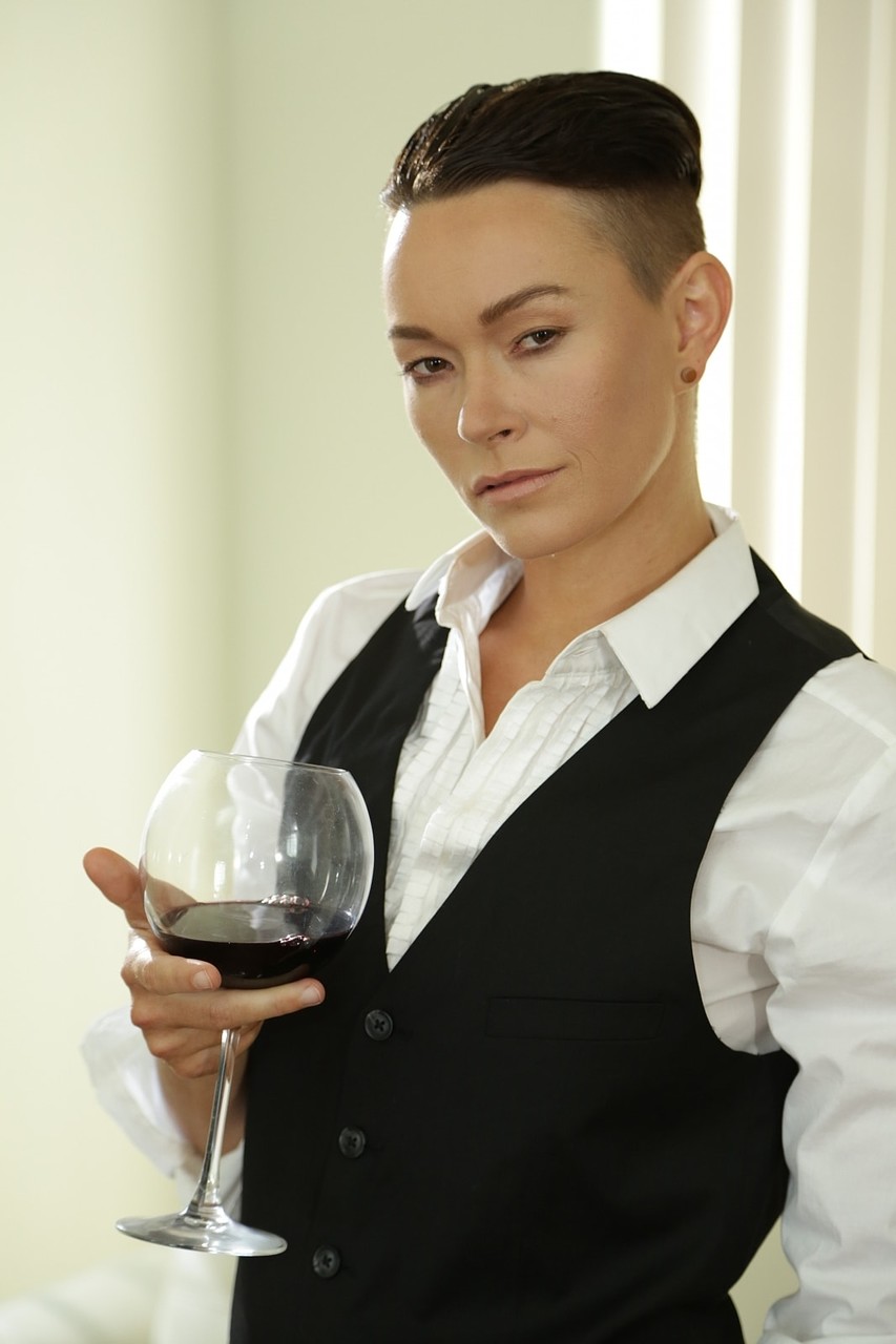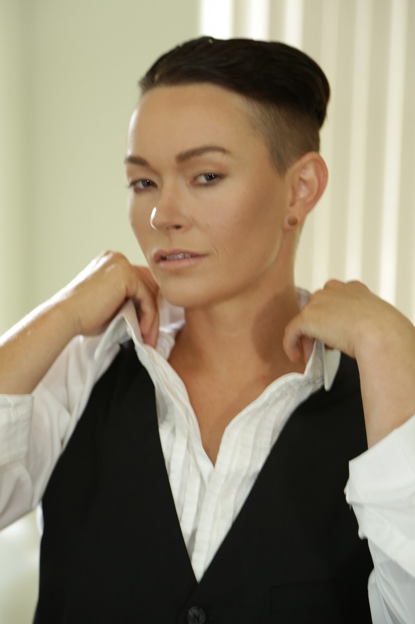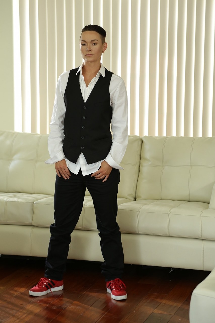 نجمة البورنو الأندروجينية جيز لي تغازل بملابس رجالية ضيقة، تُبرز جاذبيتها كـMILF قصيرة الشعر ومنحنياتها الصغيرة المغطاة في معرض مثير غير عاري.