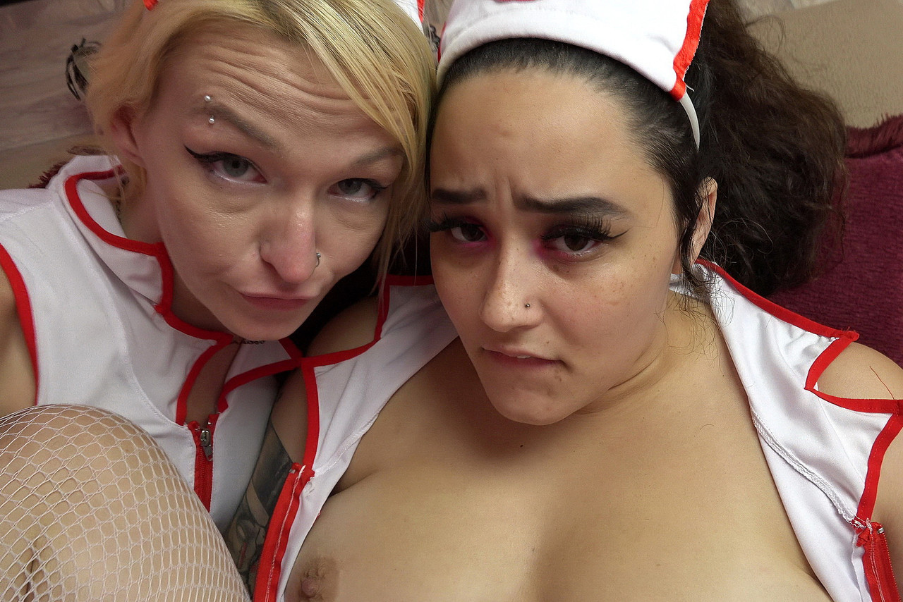 الممرضات الفاجرات نوفا راي وإنديغو دانسيس يمصن الكس في ثلاثي FFM حار