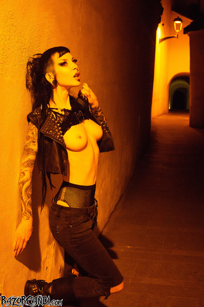 البانكية الموشومة رازر كاندي تُظهر ثدييها ومؤخرتها في الهواء الطلق - معلومات المعرض