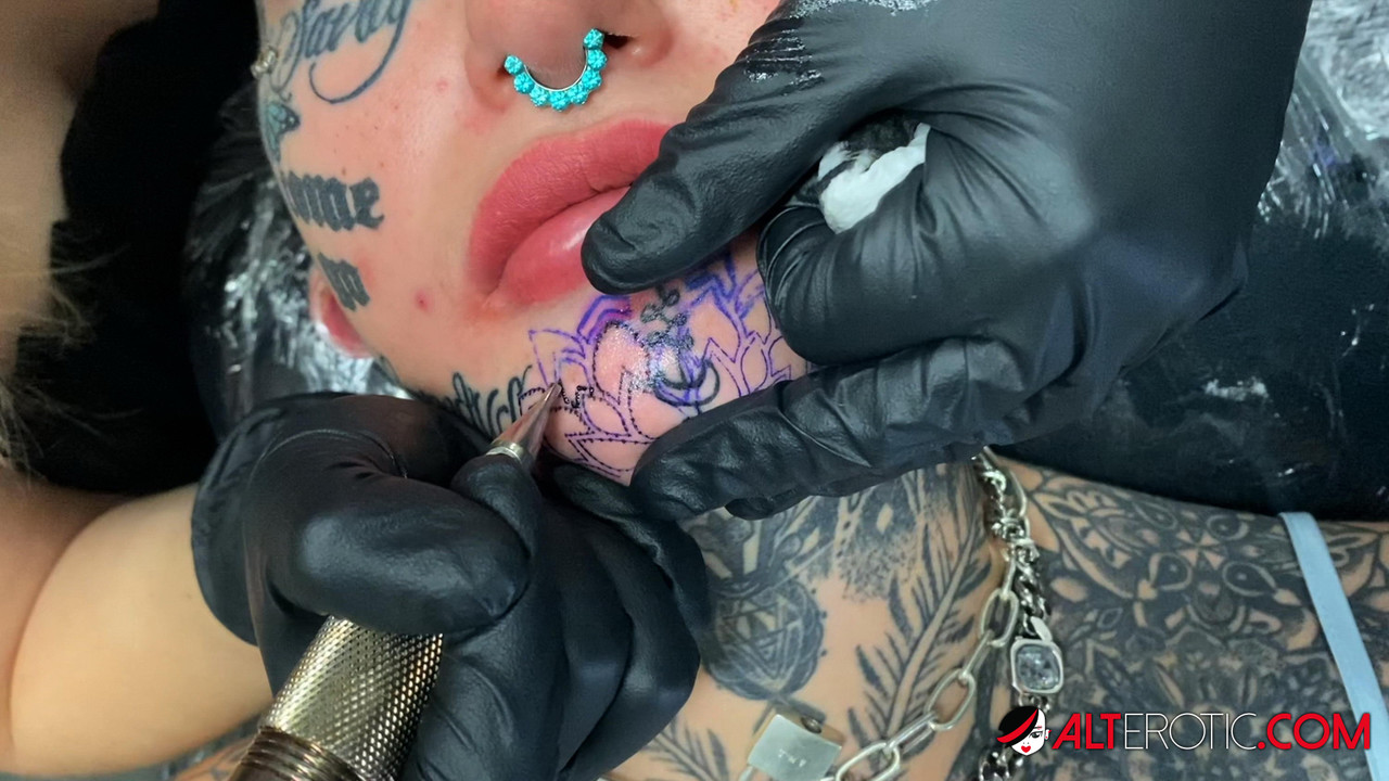 تعرض أمبر لوك أحدث وشم وجهي لها في هذه اللقطة المقربة الحميمة للفيتيش، مع عمل حبر مفصل من فنانة ماهرة. شاهد التحول واستمتع بالفن.