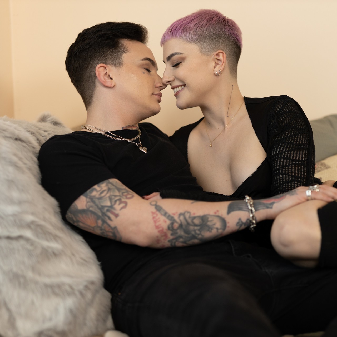 مشاهدة نيكي هارتس، التي لها شعر وردي وموشة، تنتزع ملابسها حتى تصل إلى الجوارب والملابس الداخلية، وتلاعب جسدها النحيل مع عارضة اصطناعية بينما تقبل رجلها، ثم تتشاجر بظرها الموشة بشكل طبيعي أمامه.