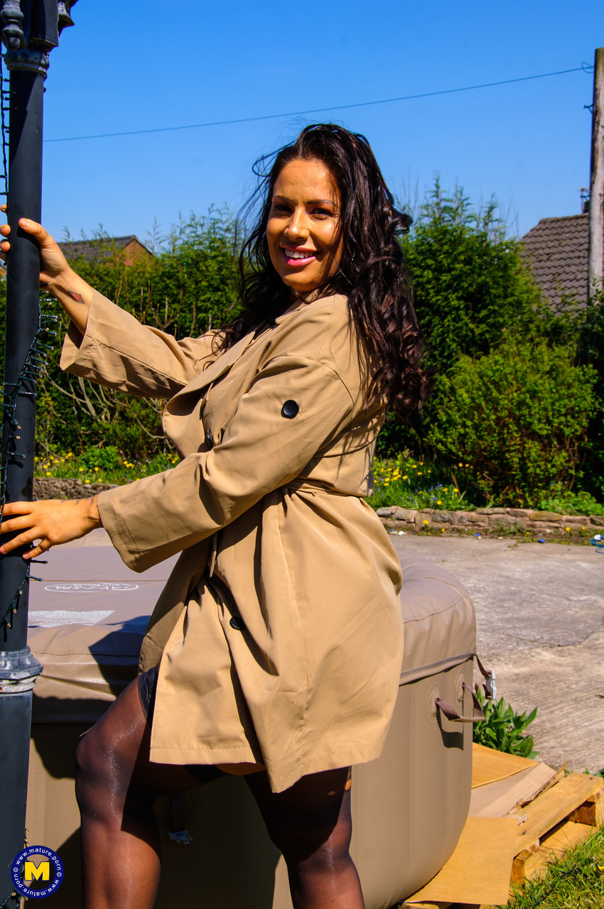 الأم البريطانية الممتلئة إيلا روكسس تُظهر مؤخرتها الضخمة وصدرها الكبير في جوارب طويلة، تفتح أرجلها في الهواء الطلق لتدخل لعبة في كسها الناضج.