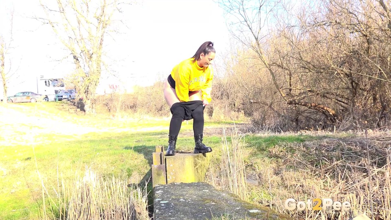 المراهقة التشيكية نيكوليت نوار تتبول في الخارج، تفتح كسها بالأحذية. البنية الجميلة تتبول قرب البركة في لقطة مقربة، مهبل مراهقة يقطر.