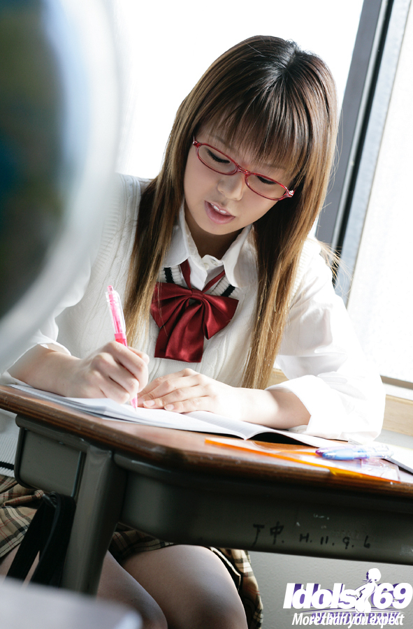 الطالبة الآسيوية القذرة يومي كيمينو تخلع تنورتها وملابسها الداخلية - معلومات المعرض
