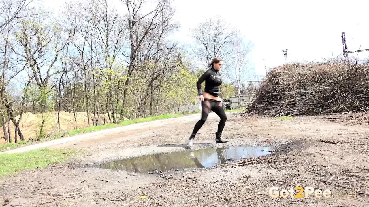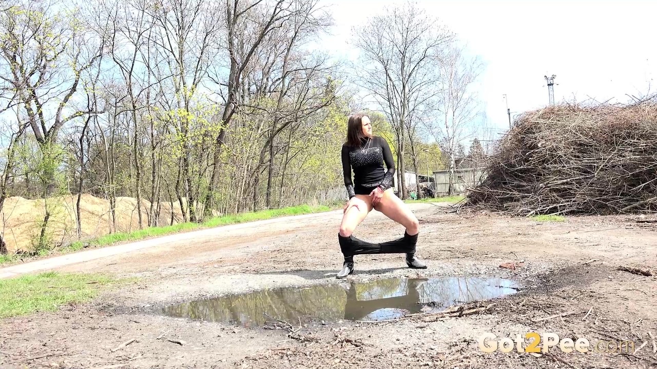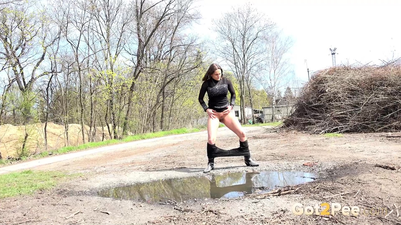 الفتاة الوحيدة اليائسة بربي تتبول في بركة أثناء الخروج في النهار - صورة 4 / 15
