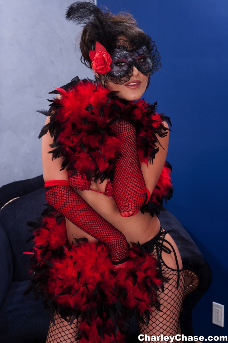 النموذج اللاتيني تشارلي تشيس يلمس مهبلها في ملابس عاهرة بعد إزالة القناع