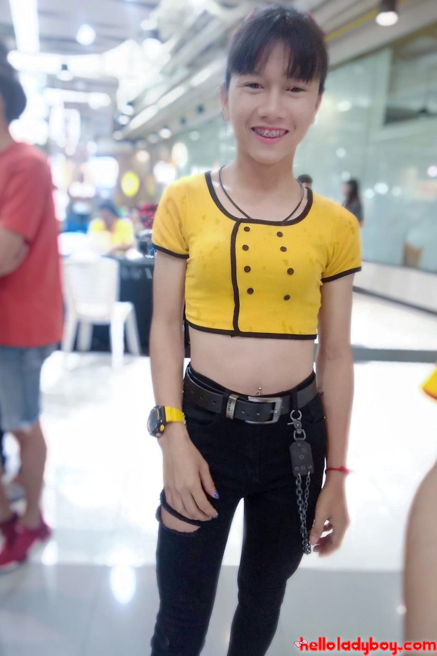 مجموعة لطيفة من الليدي بوي الآسيويين في جينز مثير وملابس، شيميل صغيرة تُظهر جسدها المشدود. عبيدات شيميل لطيفات يغازلن في ملابس لطيفة.