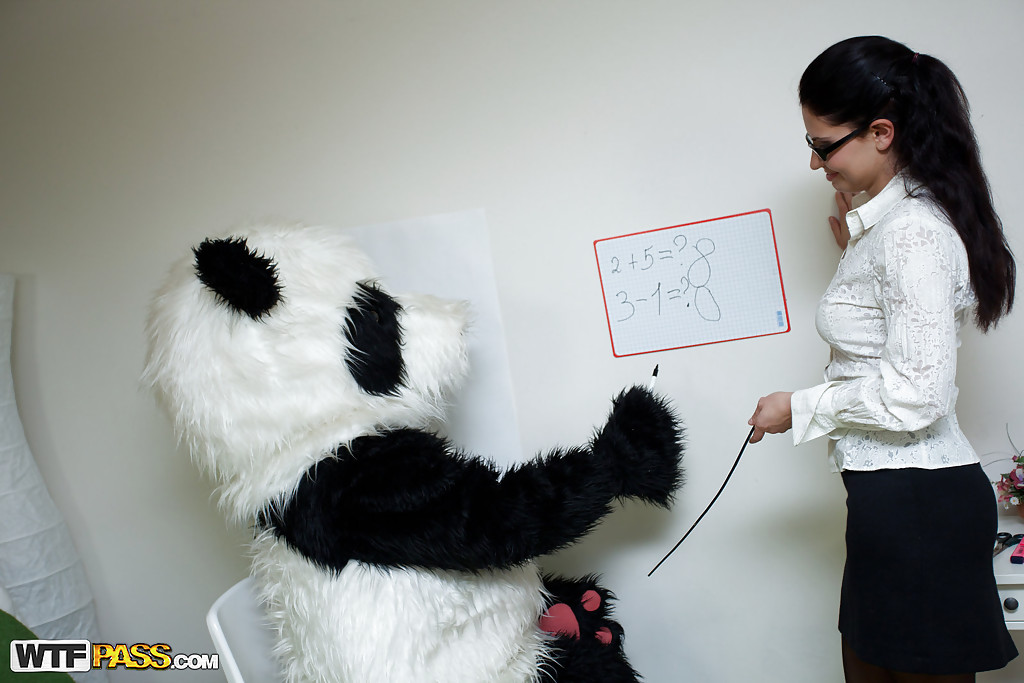 المراهقة المثيرة العابثة بالنظارات تستمتع بلعبة الباندا - معلومات المعرض