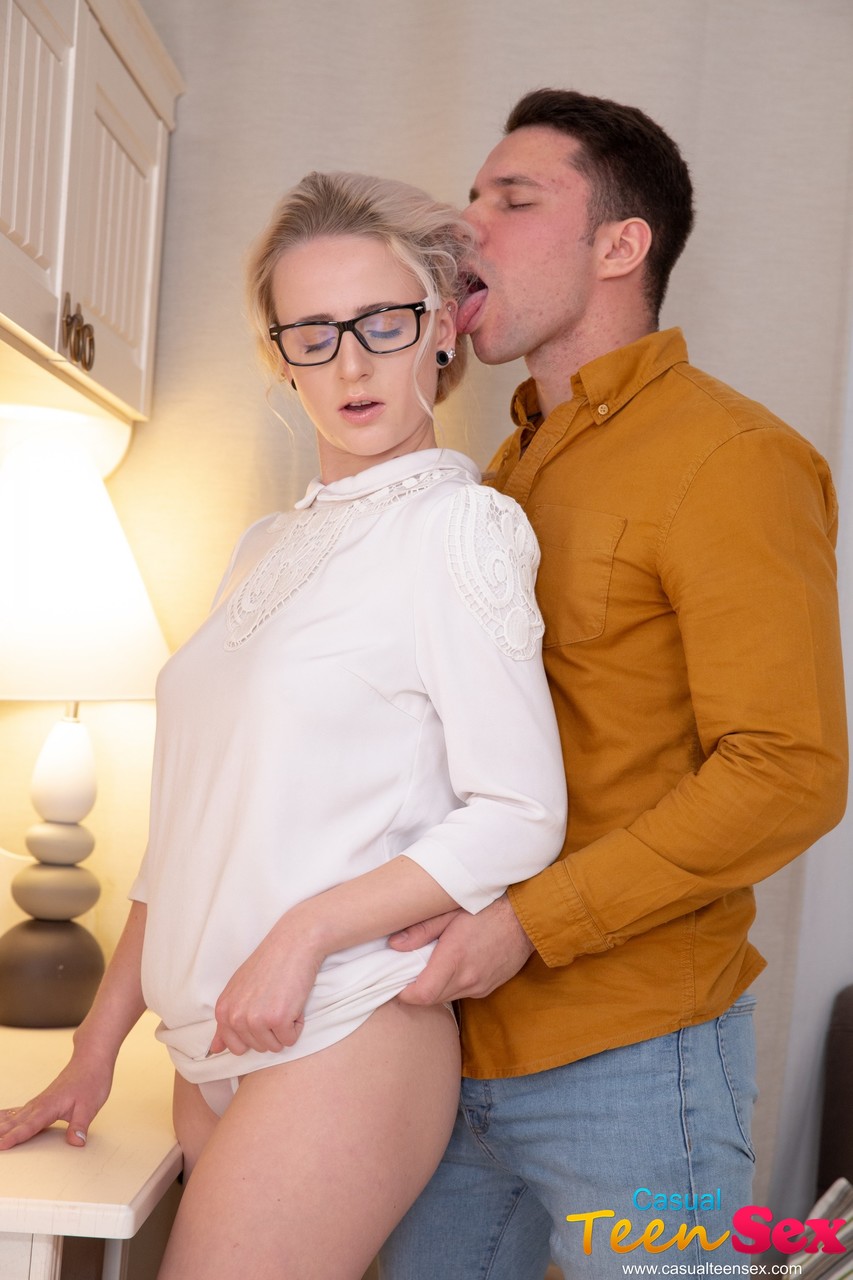 المراهقة الجامعية الشقراء النرجسية هانا ري تفتح ساقيها الصغيرتين للقضيب الضخم بنظارتها وجواربها وفستانها. زوج هاوي ينيك كسها الضيق بثديين طبيعيين، ملابس داخلية تحت التنورة وتقبيل شغوف.