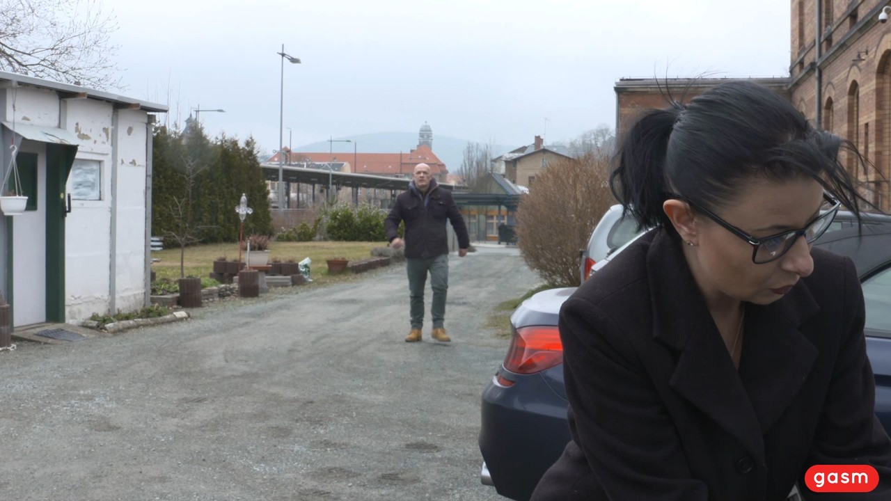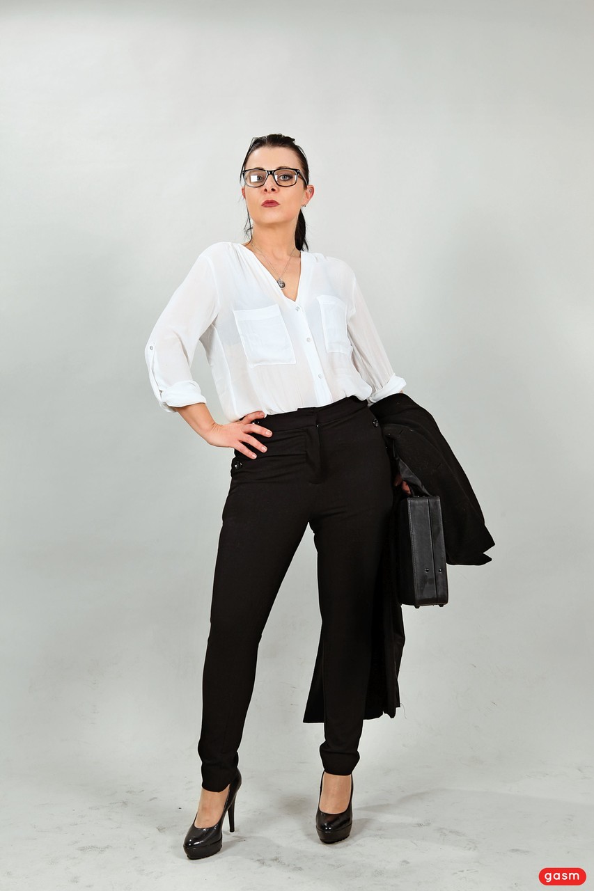 الأم الألمانية بوني ديفيل في جوارب طويلة تفرد ساقيها الطويلتين في الهواء الطلق لممارسة الجنس العنيف مع رجل مسن، وهي ترتدي الكعب العالي والزي الرسمي.
