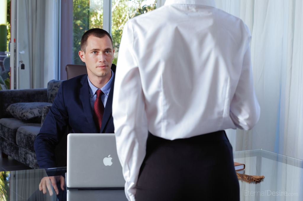 المساعدة الإدارية الأوروبية الجذابة نانسي أ في تنورة سوداء