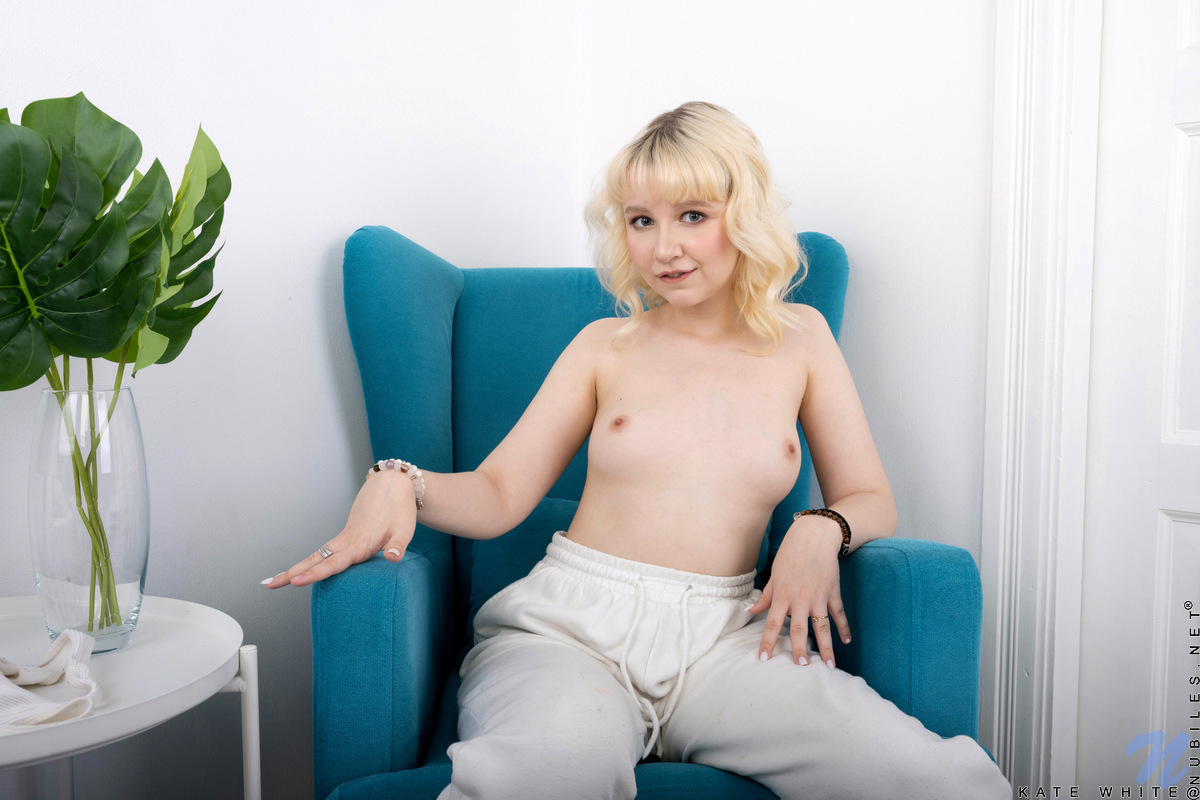 المراهقة الشقراء كيت وايت تثير في إجراء منفرد ، منتشرة فرجها الوردي الضيق وإظهار مؤخرتها اللطيفة وثدييها الصغيرين.