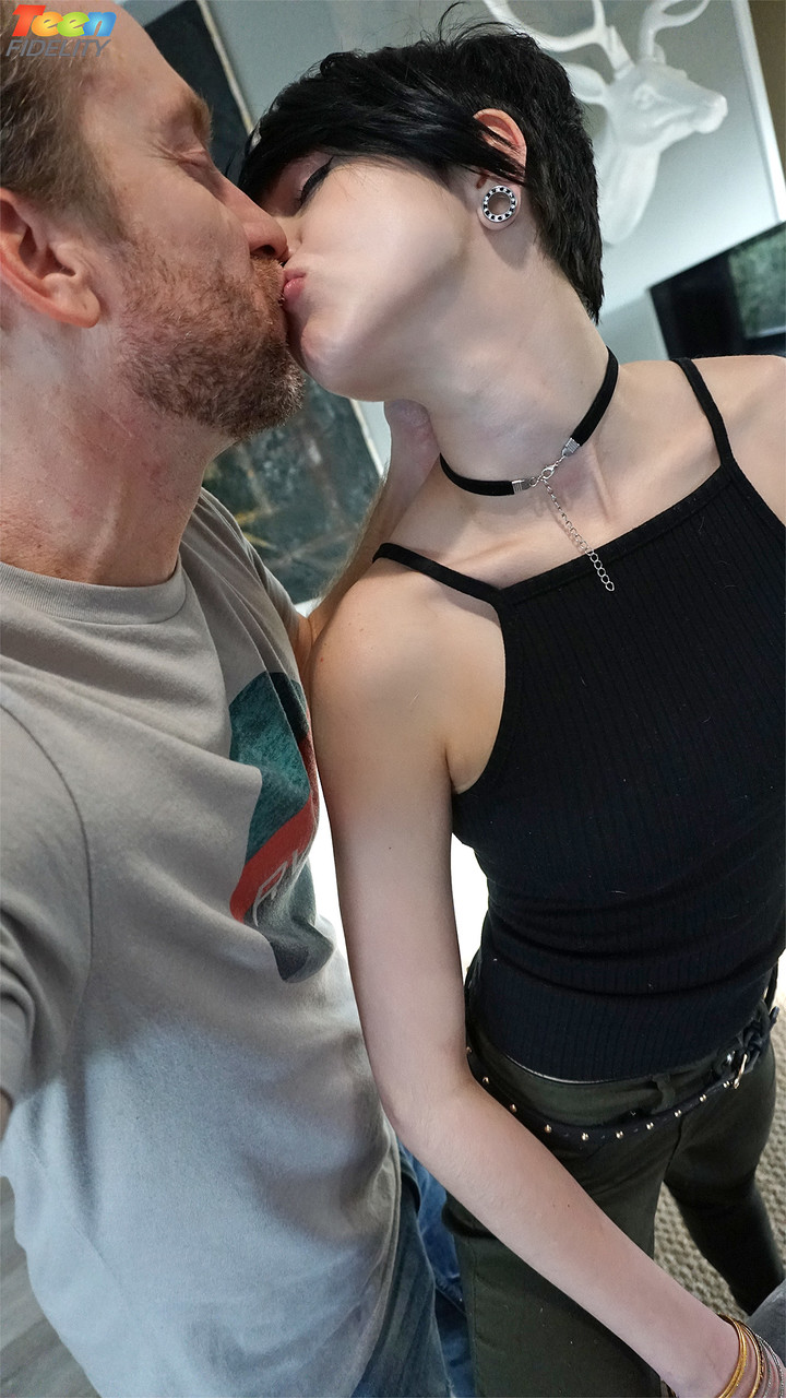 المراهقة ذات الشعر القصير كادي ميركوري تفتح كسها المبلول للنيك العميق، تقدم مص زب متدلٍ باللعاب وتملأ فمها اللطيف بالمني.