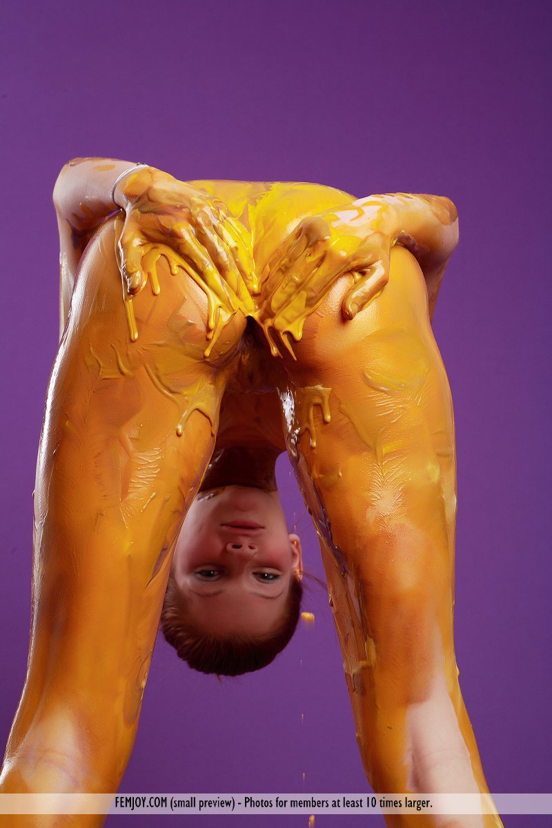 أنجيلينا بي: شقراء حمراء نحيفة عارية تماماً طلاء الجسم - معلومات المعرض