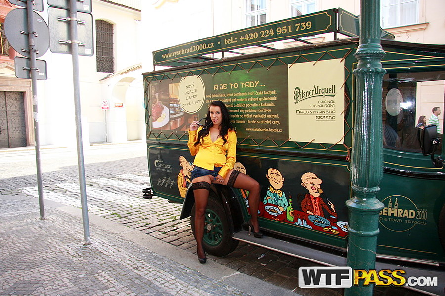 ترفع الشقراء الهواية أنجيليكا تنورةها لجماع شرجي في الهواء الطلق على بطانية في الأشجار، وتظهر بال mal ووركينج تايت في موقف خطر في المكان العام.