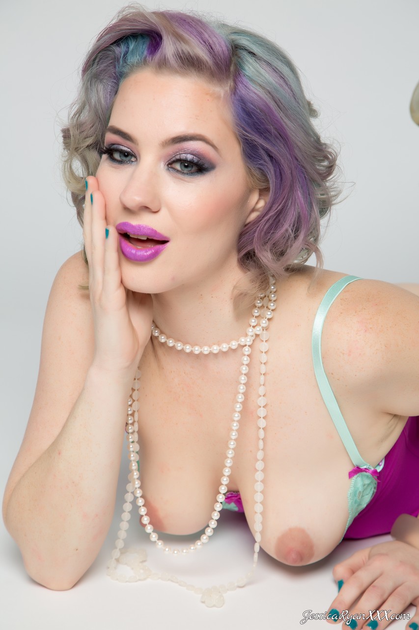 النجمة الإباحية الجنسية جيسيكا رايان تتصور في ملابس داخلية ملونة وتحك بزازها الكبيرة - معلومات المعرض