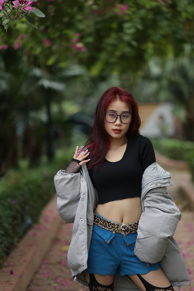 الآسيوية النرجسية ناتاليا تغازل بنظارات وجوارب وشورت في الخارج، تُبرز إطلالتها العاهرة في الحديقة. الجمال الأحمر الهواية يتعرى.
