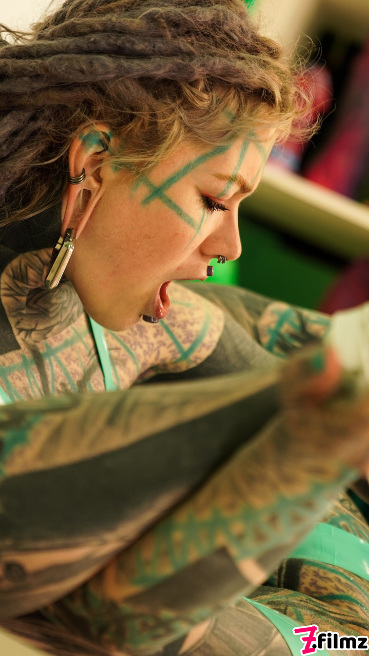 المراهقة الأوروبية الموشومة أنوسكاتز في لingerie من اللاتكس وكعب عالٍ، استمناء شرجي عميق باستخدام ديلدو في لقطة مقربة مع فيتش ثقب الجسد
