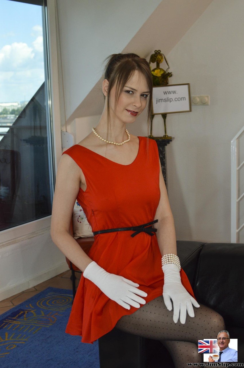 كوكو بقفازات بيضاء تمزق الجوارب لتعرض مهبلها المحدوب - معلومات المعرض