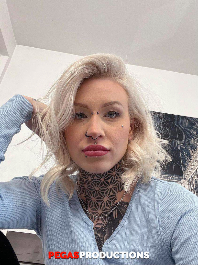 الأميرة المراهقة الموشومة 69، ذات الثديين الصغيرين والثقوب والجلد الموشوم، تثيرك في معرض صديقة غير عاري.