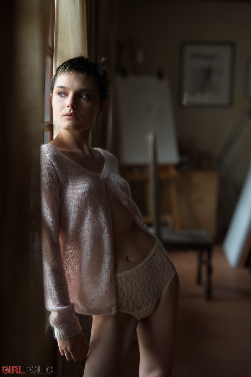 الجمال ذو الشعر القصير كاترينا كوريا تدخن بإغراء بينما تُظهر ثدييها الصغيرين المنتصبين في ملابس داخلية شفافة. عارضة الجمال النحيفة تغازل بثديين صغيرين مثاليين وسحر جذاب.