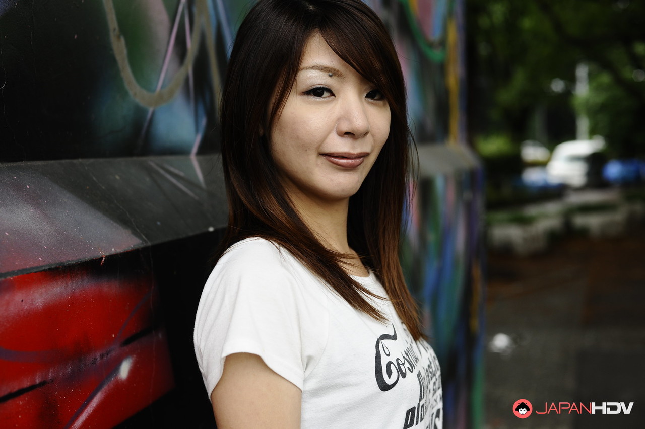 الفتاة اليابانية المنفردة تومومي ماتسودا تتصور في الهواء الطلق بقميص تي شيرت وشورت جينز