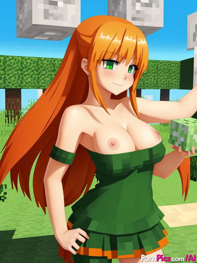 مشهد ماينكرافت مع فتاة هنتاي حمراء الشعر لامعة وثديين كبيرين