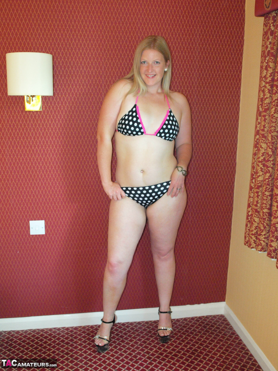 الأم السمينة سامانثا تتخلص من بيكينيها المُنقط لتُظهر جسدها الممتلئ الممتلئ، ثدييها الصغيرين، مؤخرتها الكبيرة وساقيها الطويلتين بالكعب العالي في جلسة تعرٍ هواة.