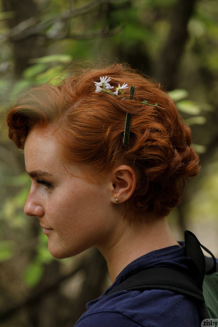 الهواة الحمراء الشعر دابني كونراد ترتحل في الهواء الطلق، تتباهى بمؤخرتها الكبيرة وثدييها الطبيعيين بينما تتعرى حتى ملابسها الداخلية، تُظهر شعرها الأحمر القصير ووجهها الجميل.