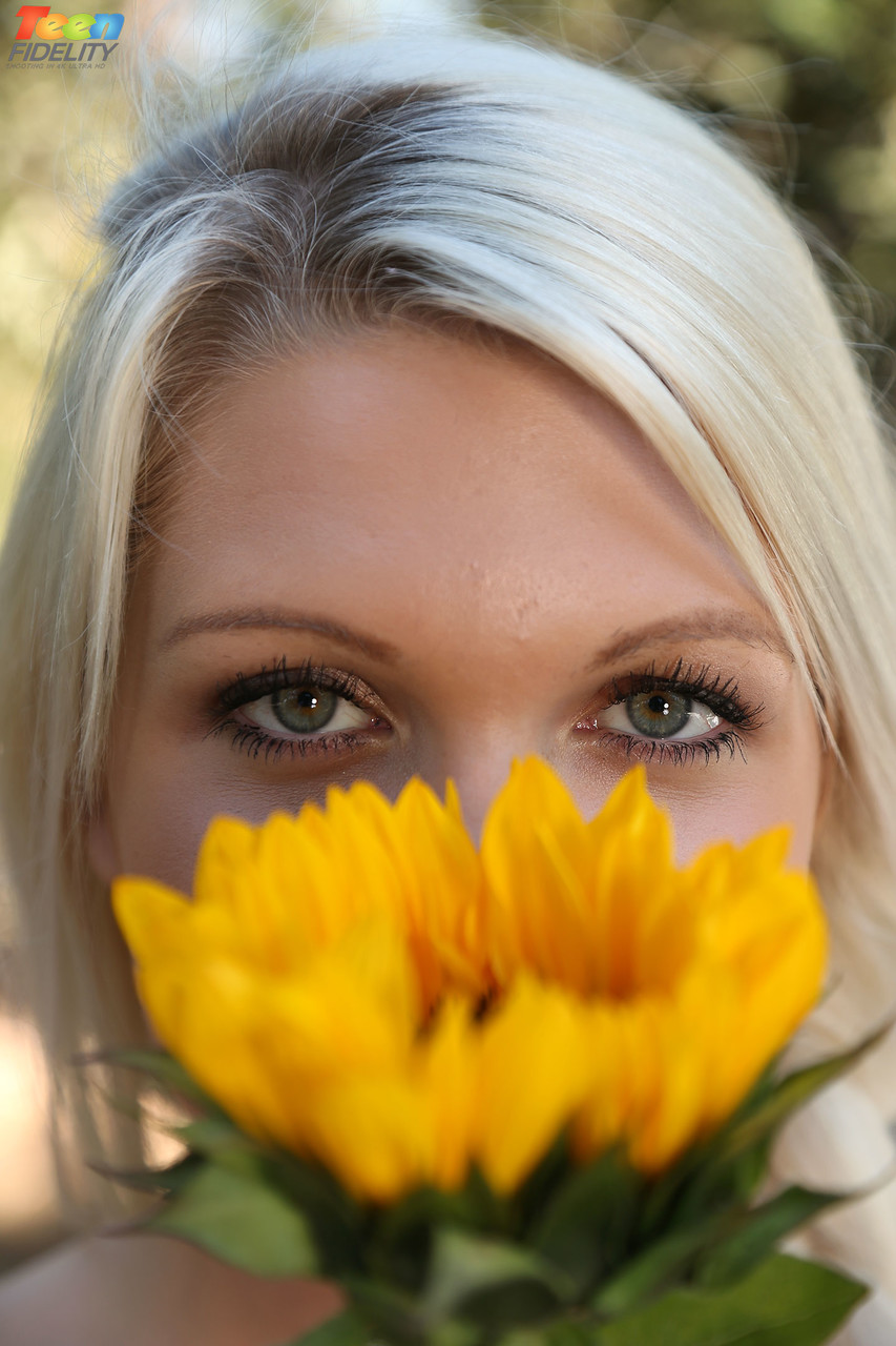 آشلي ماي، مراهقة شقراء نحيفة، تُبرز ثدييها الصغيرين على الفناء الخلفي - صورة 8 / 17