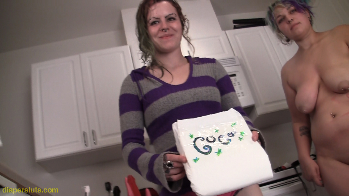 الفتيات المثليات كوكو وليلي يتعرين في المطبخ ثم يرتدين الحفاضات
