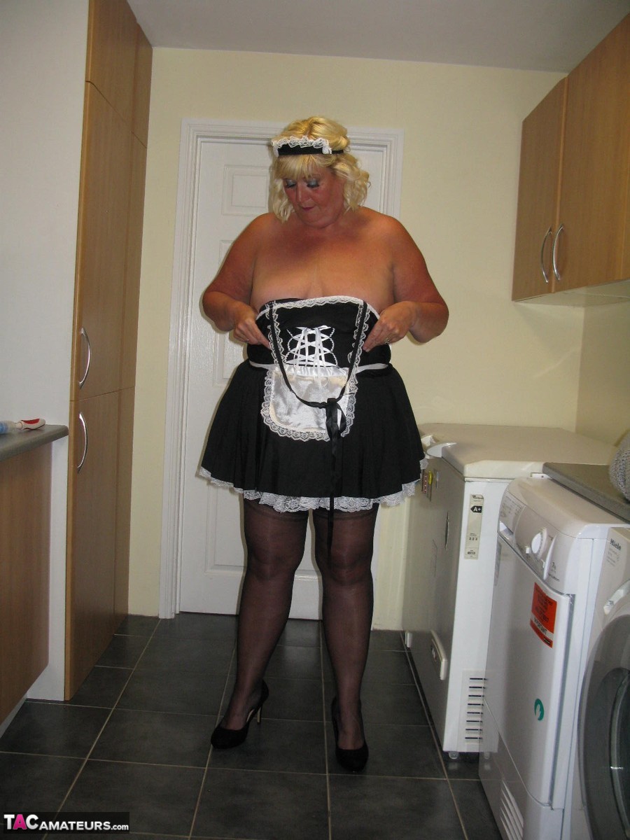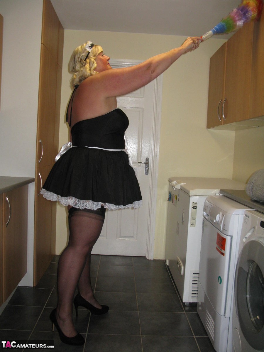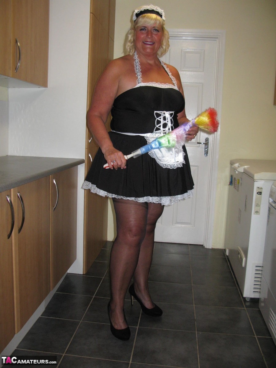 الخادمة البدينة الشقراء كريسي المملكة المتحدة تكشف عن نفسها أثناء العمل في المطبخ - معلومات المعرض