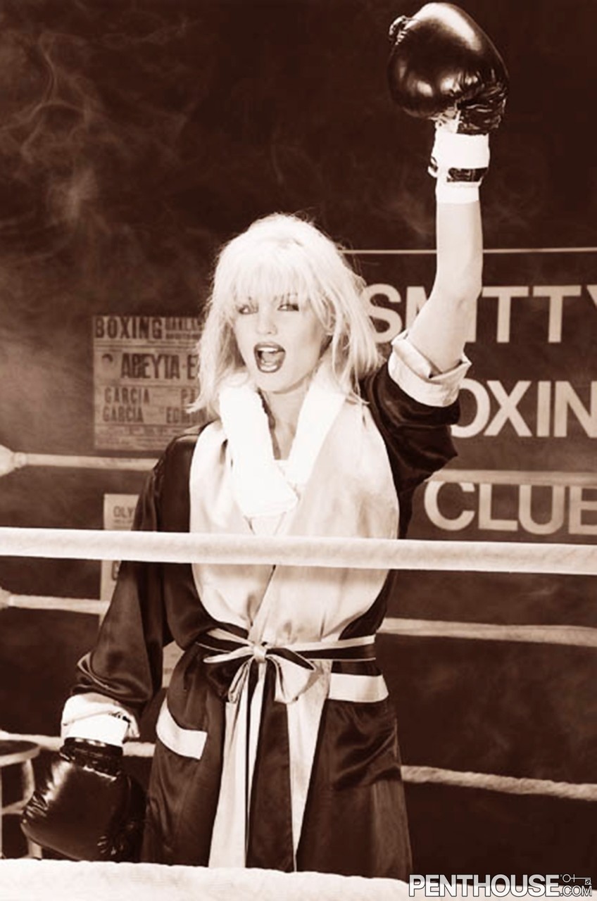النجم الإباحي الأشقر ليغ أندرسون تبرز صدرها الكبير في حلبة الملاكمة - معلومات المعرض
