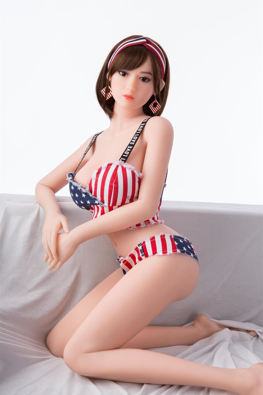 دمية الجنس الواقعية تظهر الصدور الكبيرة في ملابس نوم علم أمريكي
