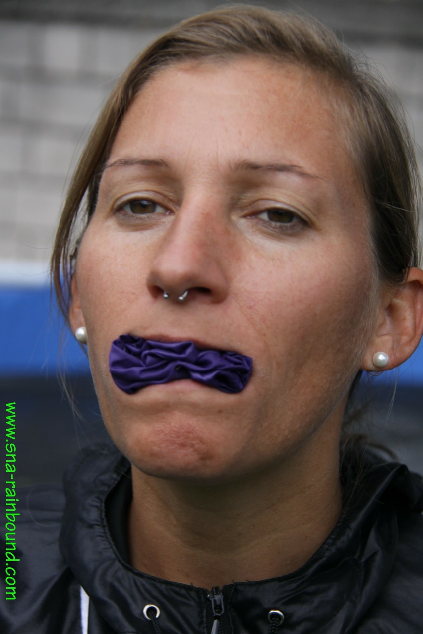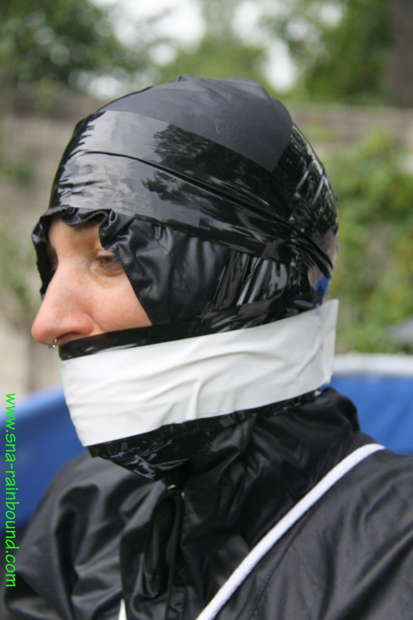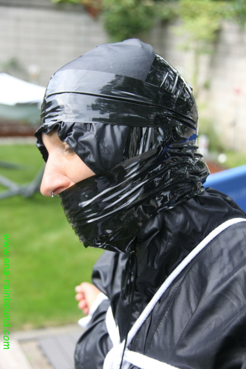 امرأة هاوية ساندرا مكممة ومربوطة إلى حمام السباحة بالمعطف المطري - معلومات المعرض