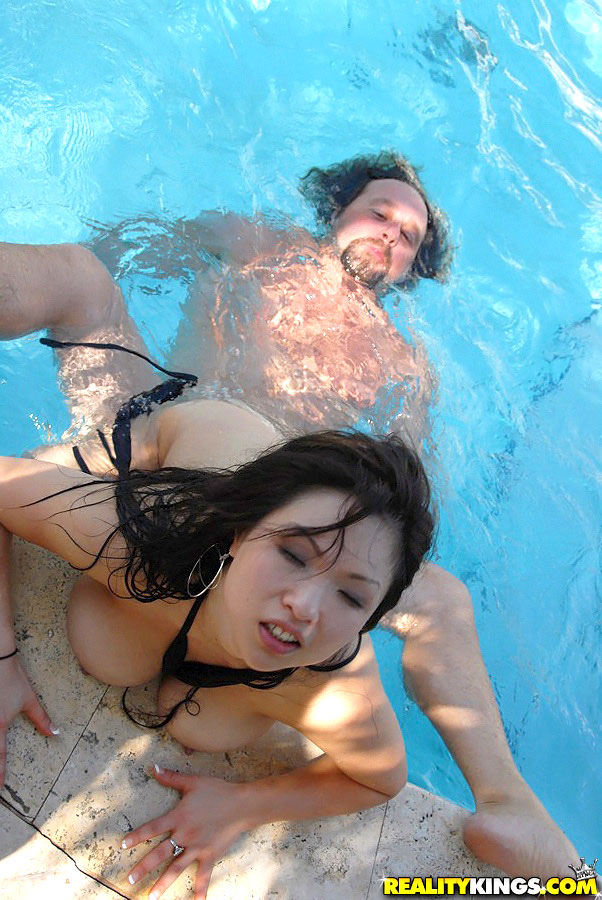 الآسيوية ميلف ألكسيا تمتص صباحية السياح السمين بجانب المسبح
