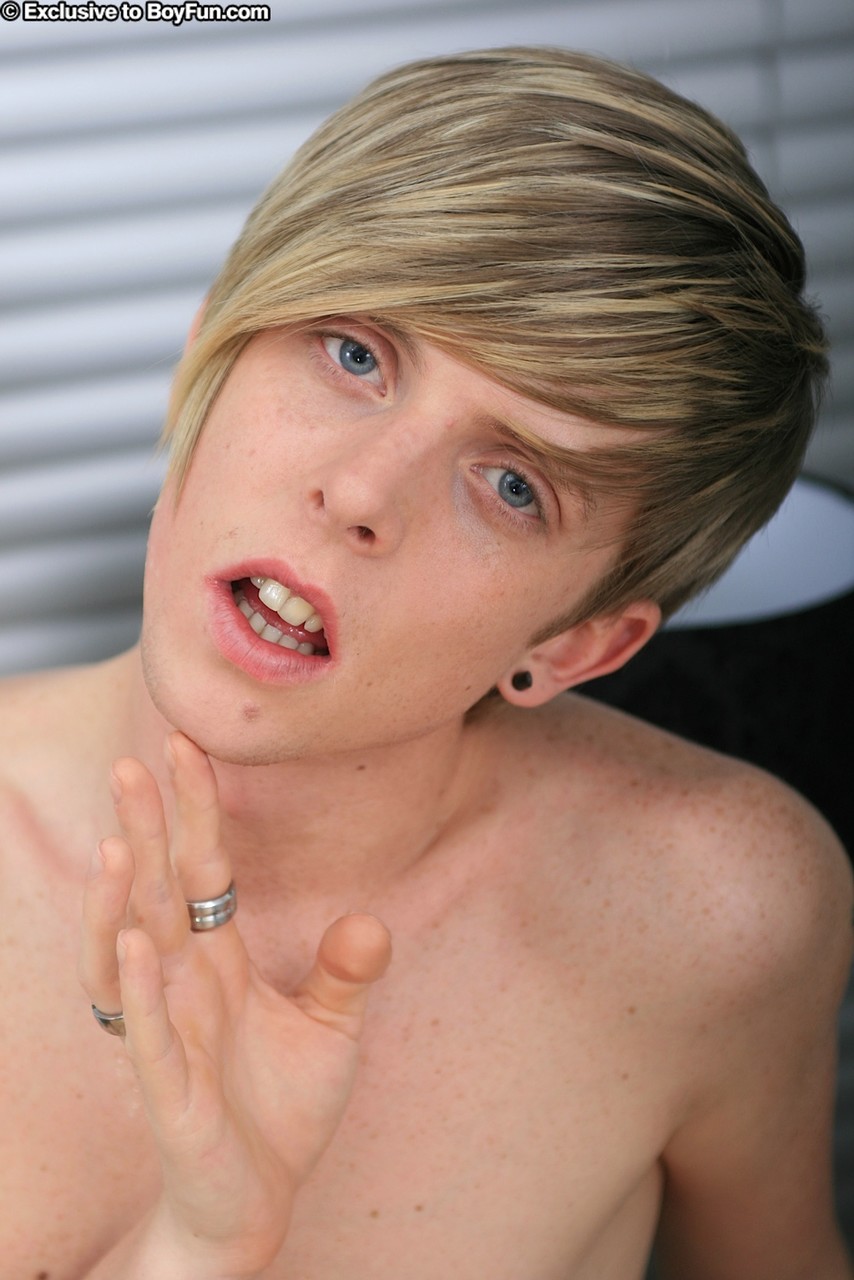 المراهق المثلية الأشقر Jamie Ryder يتعرى، يحلب زبه الصلب ويقذف حممه الساخنة أثناء جلسة استمناء فردية.