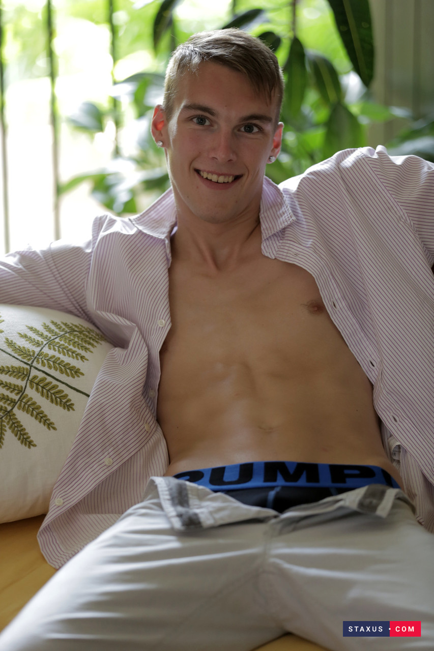 شاب نحيف تامي هانتر يتخلص من بنطاله وملابسه الداخلية قبل أن يلمس نفسه
