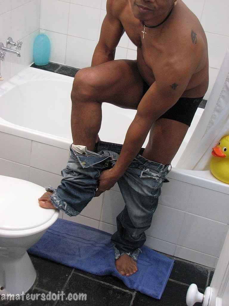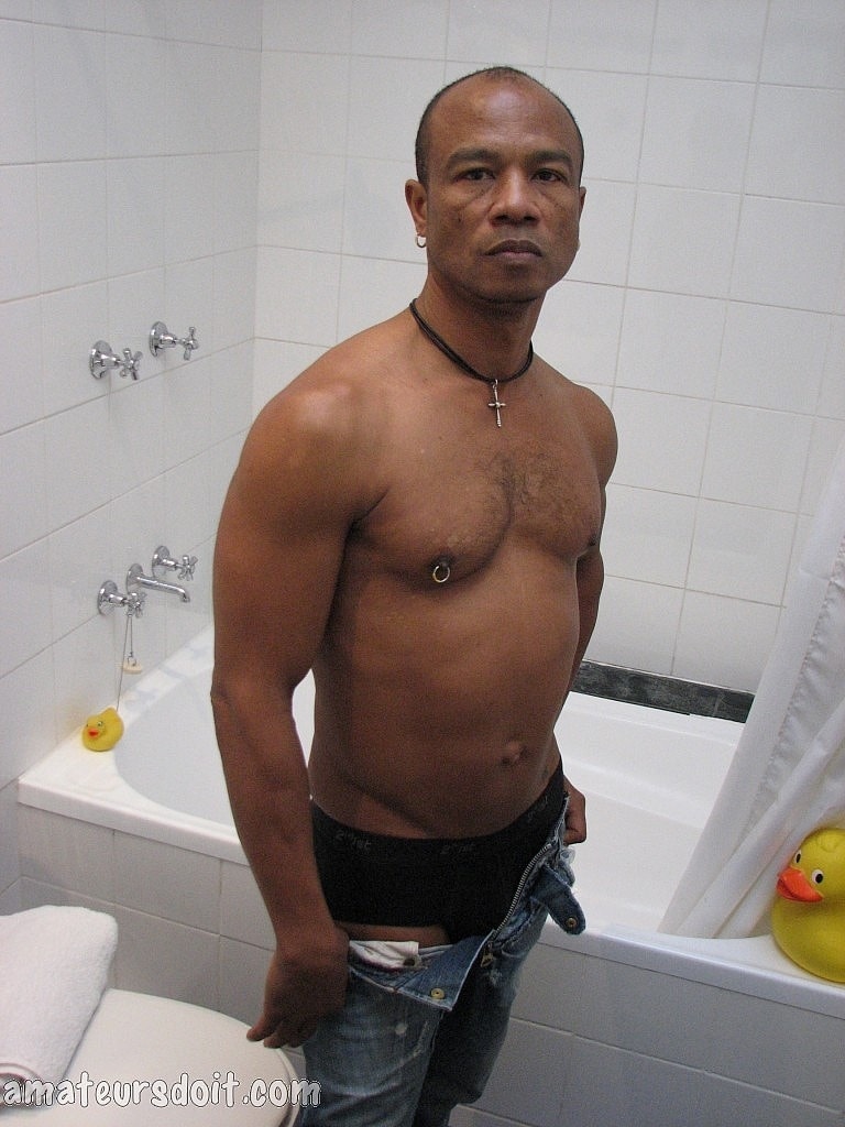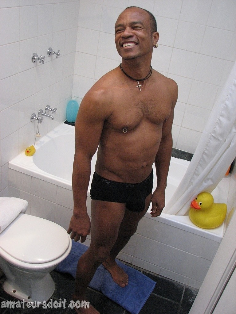 استحمام مع استمناء مع قضيب غير ختان من قبل رجل كمال الأجسام الأسود هانك هانغ - معلومات المعرض