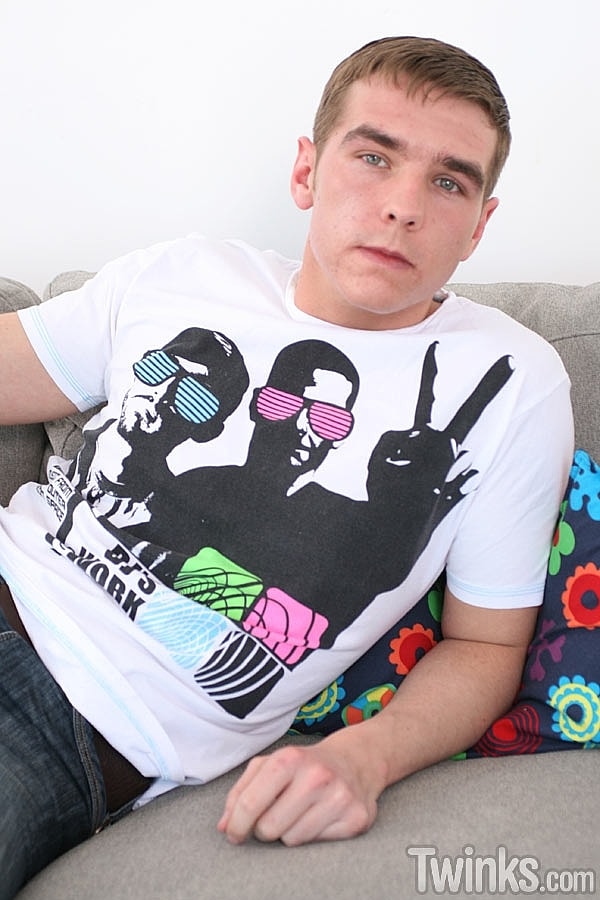 الشاب الممحون توم جاكسون يستمني زبه الصلب حتى يقذف على الأريكة