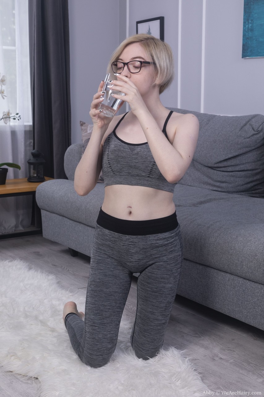 الamateure المرونة آبي في النظارات تنتشر على نطاق واسع لصورة مقربة حميمة من غطاء عانة كثيف وطبيعي، عندما تتحسس مهبلها الكثيف جدا.
