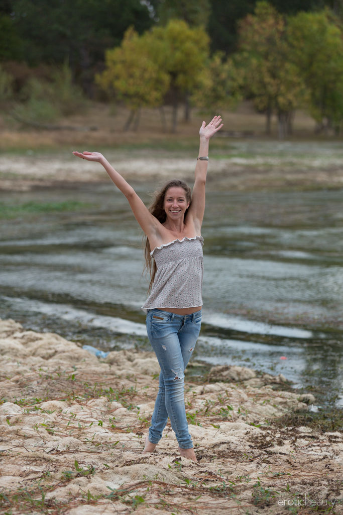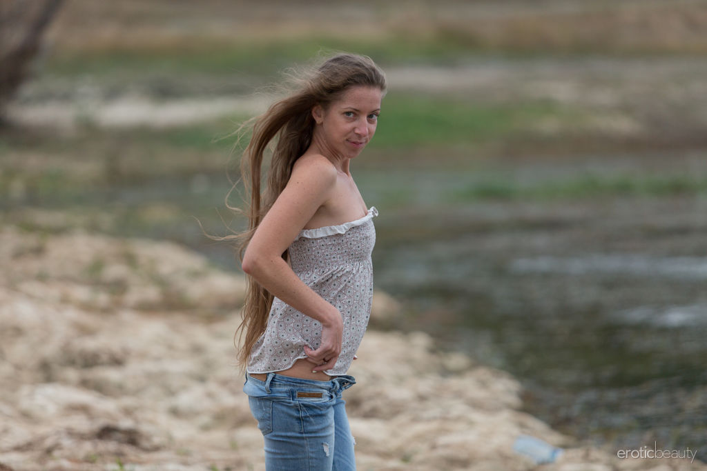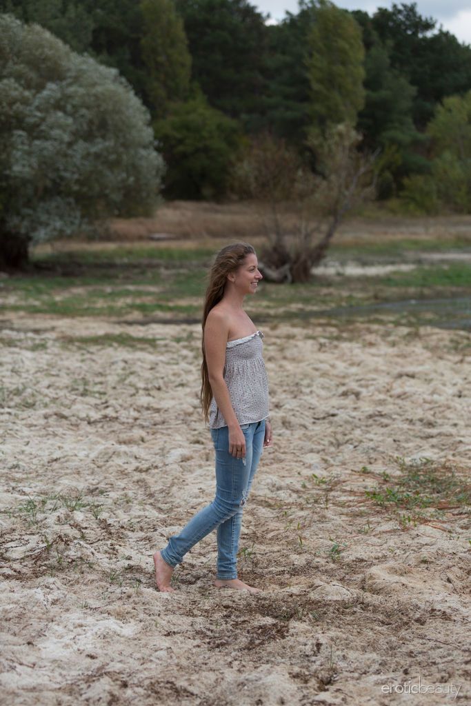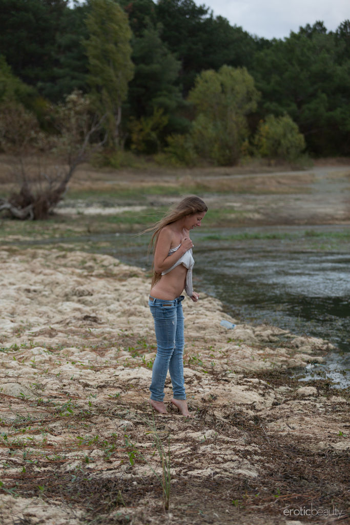 عارضة المراهقات ميكا أ تخلع بنطال الجينز الأزرق الباهت لتعرض عارية على الشاطئ - معلومات المعرض